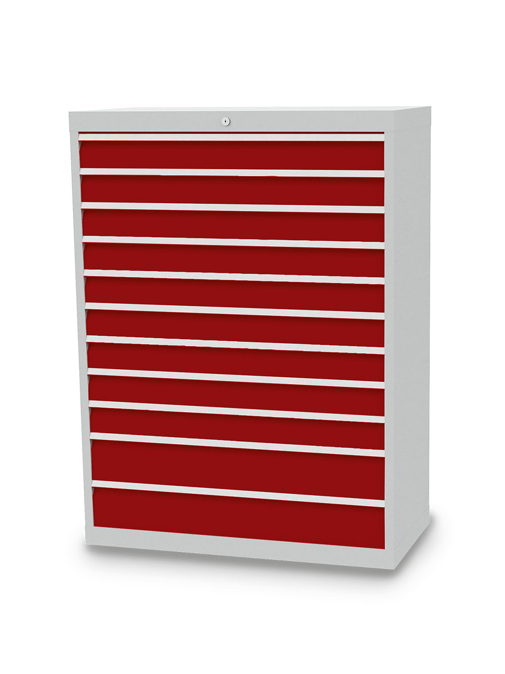 Dieser Schubladenschrank ist echt made in Germany. Stabiles Gehäuse aus verschweißtem Stahlblech. 11 x Schubladen mit Vollauszug 100%. Erhöhte Kippsicherheit durch Schubladen-Einzelauszug, nur eine Schublade kann geöffnet werden. Sichere Zentralverriegelung, diebstahlsicher.
