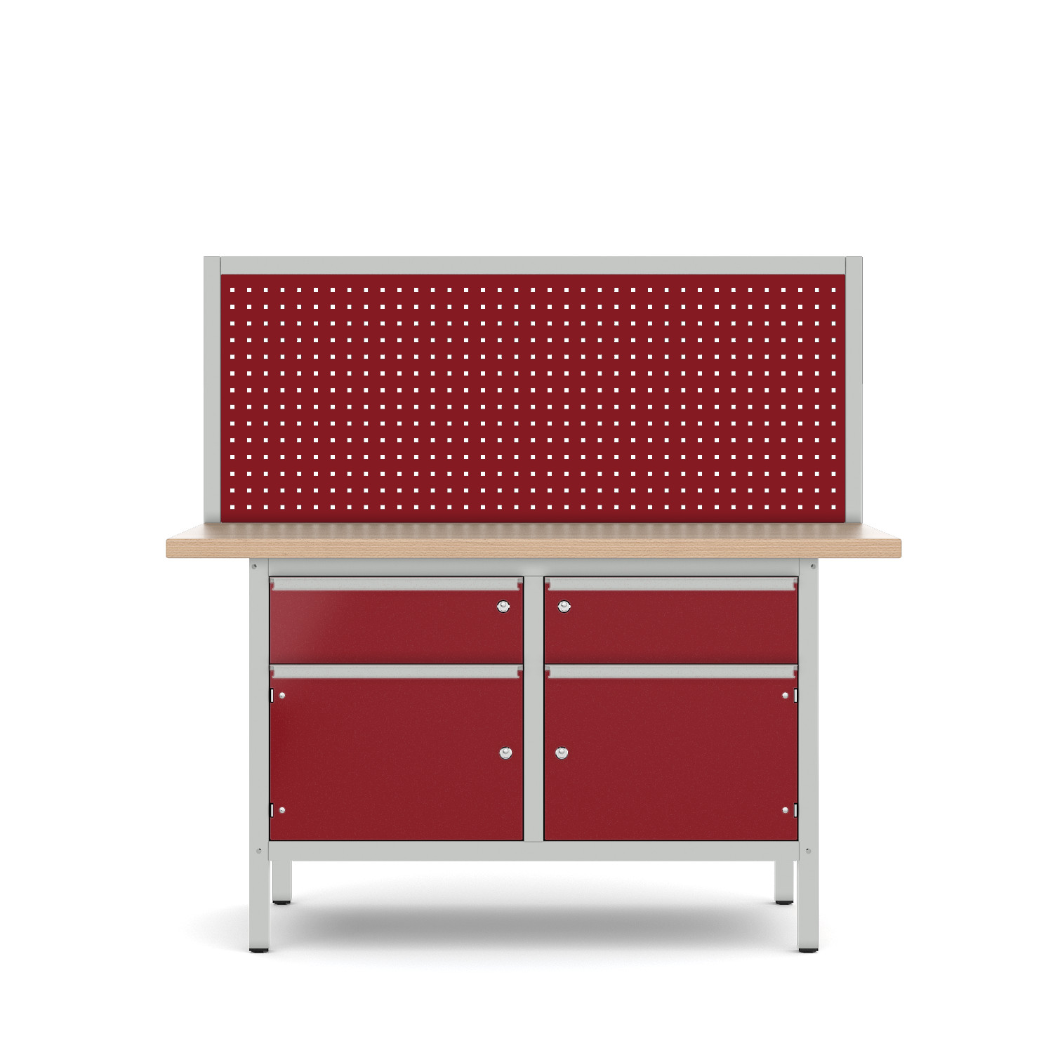 Wenn Sie bei Pador eine Werkbank + Lochblechwand bestellen, werden die Löcher selbstverständlich in der Werkbankplatte vorgebohrt, damit Sie eine leichte Montage vor Ort vornehmen können.