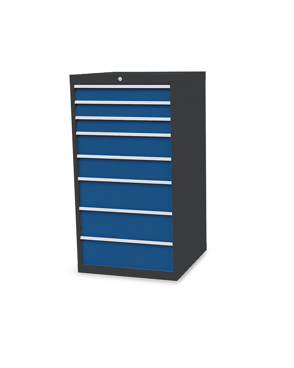 Dieser Schubladenschrank ist echt made in Germany. Stabiles Gehäuse aus verschweißtem Stahlblech. 8 x Schubladen mit Vollauszug 100%. Erhöhte Kippsicherheit durch Schubladen-Einzelauszug, nur eine Schublade kann geöffnet werden. Sichere Zentralverriegelung, diebstahlsicher.