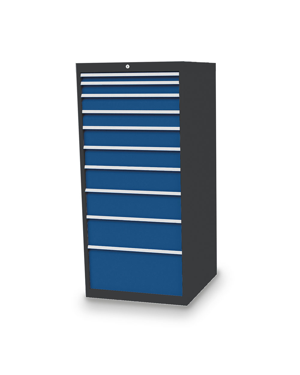 Dieser Schubladenschrank ist echt made in Germany. Stabiles Gehäuse aus verschweißtem Stahlblech. 10 x Schubladen mit Vollauszug 100%. Erhöhte Kippsicherheit durch Schubladen-Einzelauszug, nur eine Schublade kann geöffnet werden. Sichere Zentralverriegelung, diebstahlsicher.