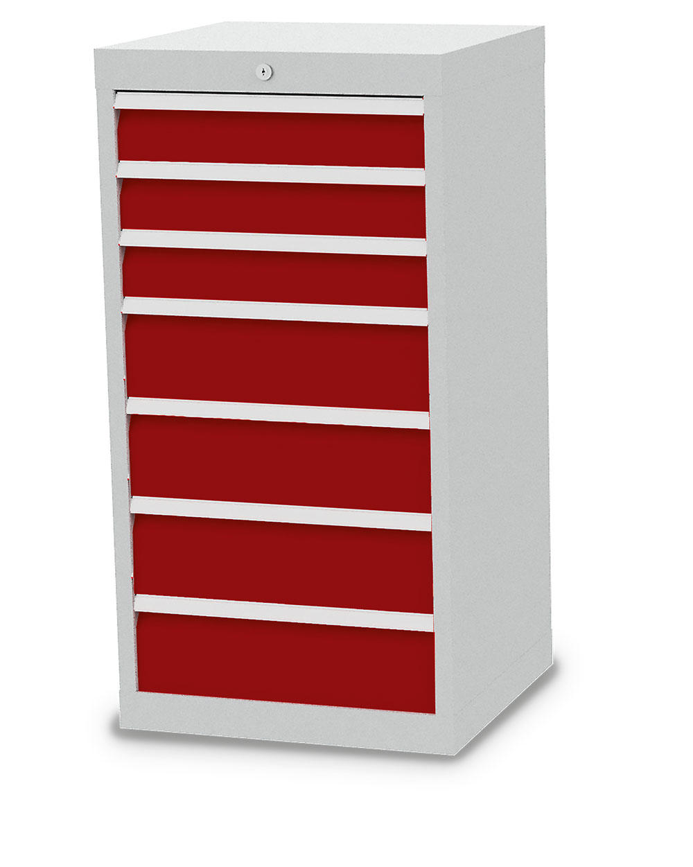 Dieser Schubladenschrank ist echt made in Germany. Stabiles Gehäuse aus verschweißtem Stahlblech. 7 x Schubladen mit Vollauszug 100%. Erhöhte Kippsicherheit durch Schubladen-Einzelauszug, nur eine Schublade kann geöffnet werden. Sichere Zentralverriegelung, diebstahlsicher.