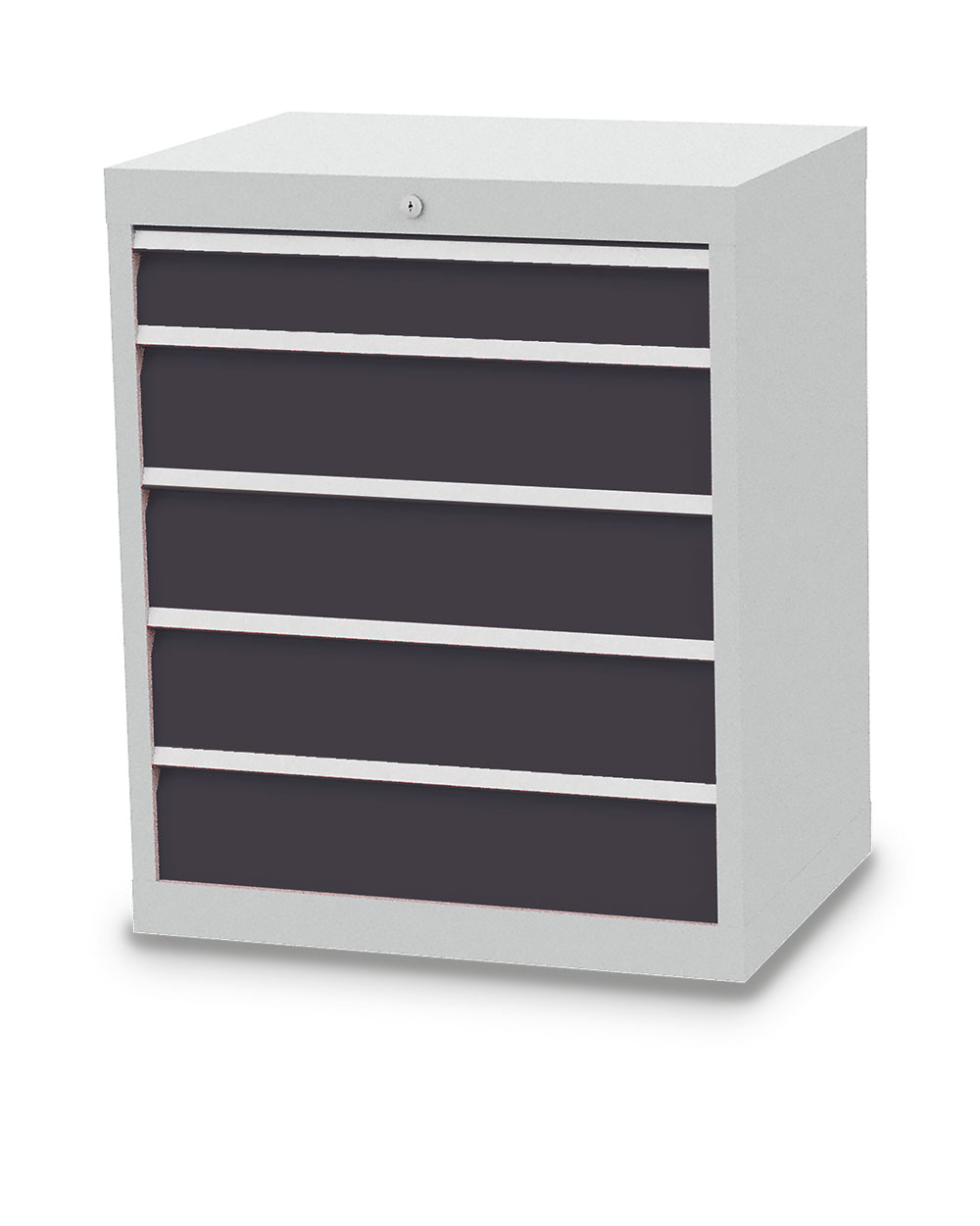 Dieser Schubladenschrank ist echt made in Germany. Stabiles Gehäuse aus verschweißtem Stahlblech. 5 x Schubladen mit Vollauszug 100%. Erhöhte Kippsicherheit durch Schubladen-Einzelauszug, nur eine Schublade kann geöffnet werden. Sichere Zentralverriegelung, diebstahlsicher.