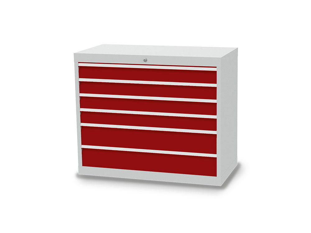 Dieser Schubladenschrank ist echt made in Germany. Stabiles Gehäuse aus verschweißtem Stahlblech. 6 x Schubladen mit Vollauszug 100%. Erhöhte Kippsicherheit durch Schubladen-Einzelauszug, nur eine Schublade kann geöffnet werden. Sichere Zentralverriegelung, diebstahlsicher.