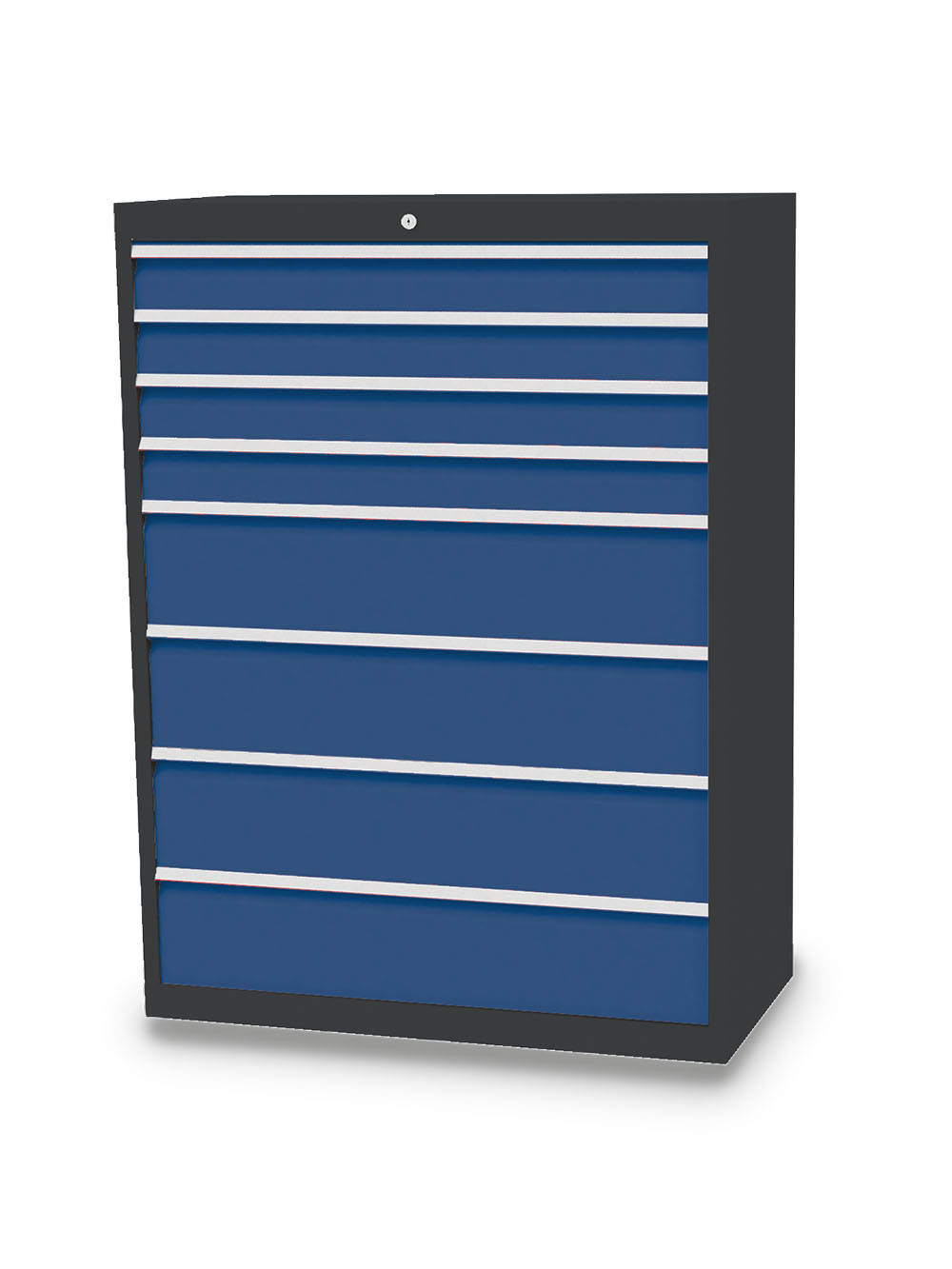 Dieser Schubladenschrank ist echt made in Germany. Stabiles Gehäuse aus verschweißtem Stahlblech. 8 x Schubladen mit Vollauszug 100%. Erhöhte Kippsicherheit durch Schubladen-Einzelauszug, nur eine Schublade kann geöffnet werden. Sichere Zentralverriegelung, diebstahlsicher.