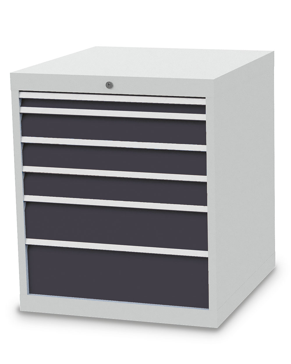 Dieser Schubladenschrank ist echt made in Germany. Stabiles Gehäuse aus verschweißtem Stahlblech. 6 x Schubladen mit Vollauszug 100%. Erhöhte Kippsicherheit durch Schubladen-Einzelauszug, nur eine Schublade kann geöffnet werden. Sichere Zentralverriegelung, diebstahlsicher.