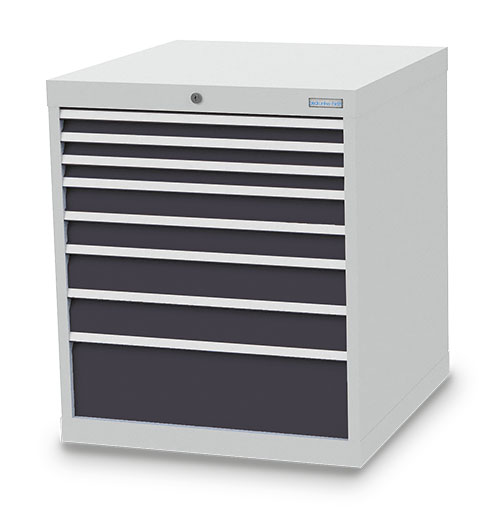 Dieser Schubladenschrank ist echt made in Germany. Stabiles Gehäuse aus verschweißtem Stahlblech. 8 x Schubladen mit Vollauszug 100%. Erhöhte Kippsicherheit durch Schubladen-Einzelauszug, nur eine Schublade kann geöffnet werden. Sichere Zentralverriegelung, diebstahlsicher.