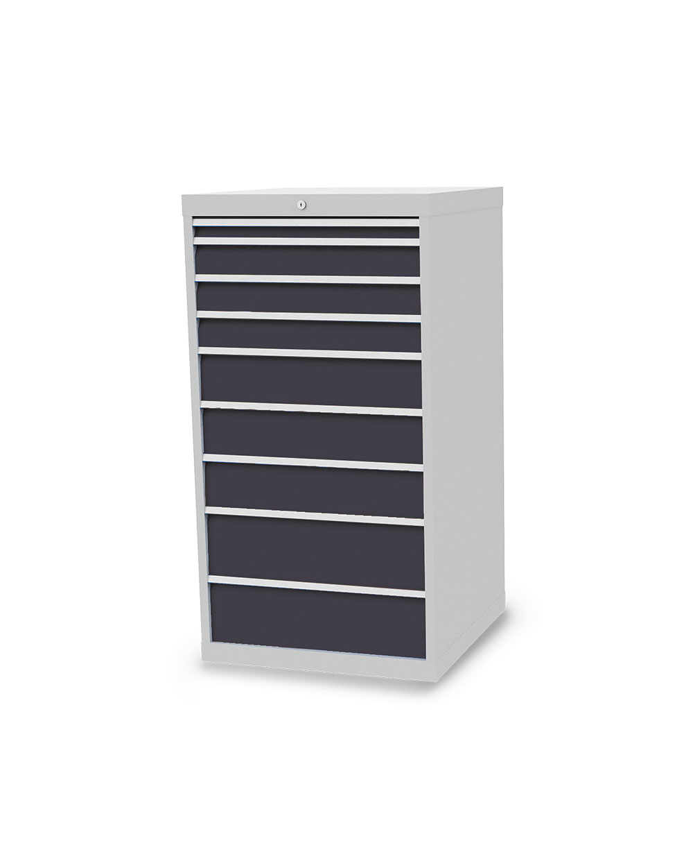 Dieser Schubladenschrank ist echt made in Germany. Stabiles Gehäuse aus verschweißtem Stahlblech. 9 x Schubladen mit Vollauszug 100%. Erhöhte Kippsicherheit durch Schubladen-Einzelauszug, nur eine Schublade kann geöffnet werden. Sichere Zentralverriegelung, diebstahlsicher.