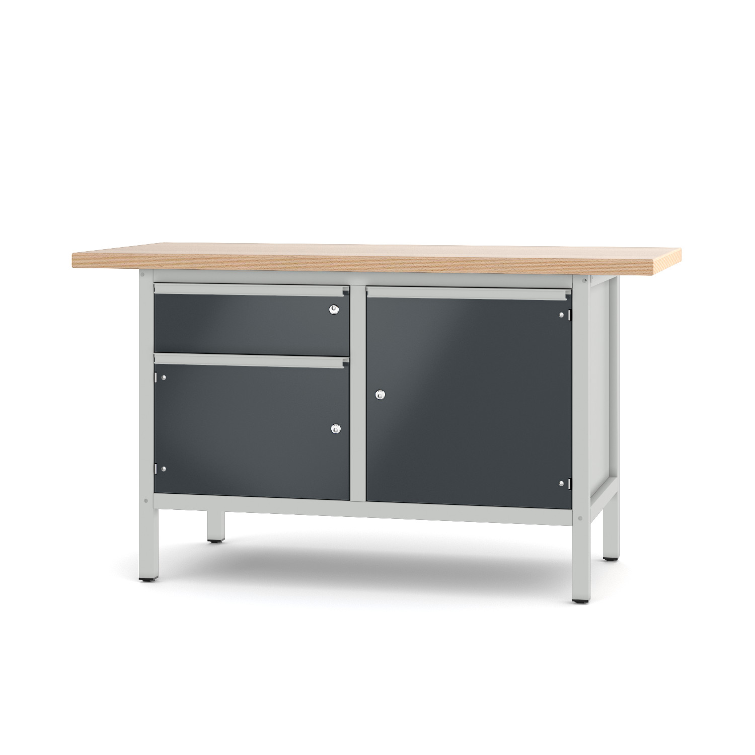 Mit dieser Werkbank liegen Sie genau richtig. Die Massiv-Leimholzplatte aus hellem Buchenholz gibt der stabilen Schweißkonstruktion den letzten Schliff und wird zu einem Design-Highlight in Ihrem Betrieb. Bis zu 1000 Kg können die Werkbänke von Pador stemmen und besitzen eine optimale Arbeitshöhe von 855 mm. Dieses Modell ist in 1,5 und 2 Metern Länge verfügbar. Passend zu jeder Betriebseinrichtung können Sie zwischen vielen Farben wählen. Direkt vom Hersteller wird Ihnen die qualitativ hochwertige und stabile Werkbank geliefert - made in Germany. Ähnliche Variationen des Typs 21 S 24 finden Sie in der Baureihe 2.