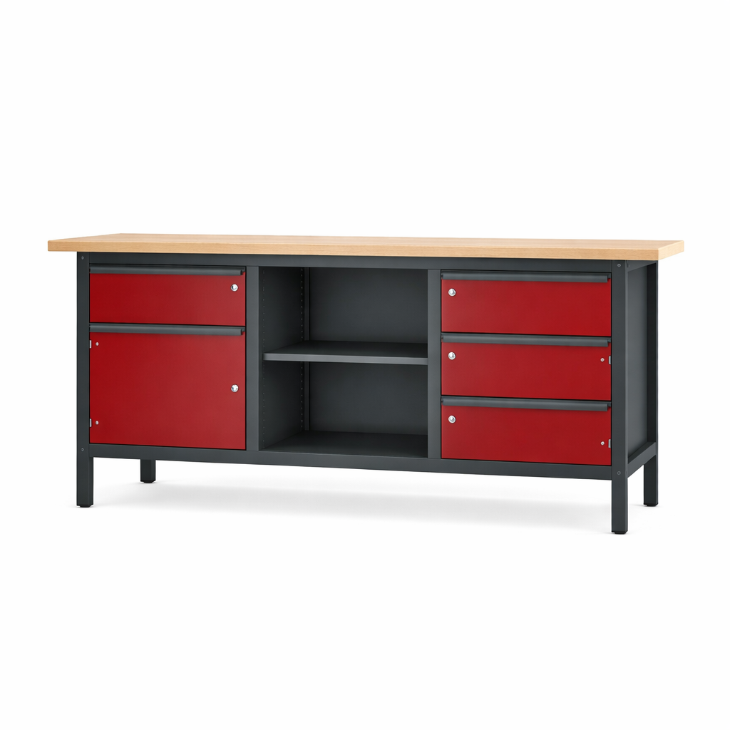Die zwei Schubladen und Türen biete viel Raum, um Ihr Werkzeug fachmännisch zu sortieren. Zwei weitere Böden helfen Ihnen Ordnung zu halten, damit Sie die Geräte immer griffbereit haben. Farblich können Sie zwischen vielen Varianten auswählen und Ihrer Betriebseinrichtung anpassen. Pador Werkbänke stehen für eine hohe Qualität und Stabilität direkt vom Hersteller. Wir liefern die Werkbank komplett montiert direkt in Ihren Betrieb, damit Sie mit der Arbeit starten können. Mit einer Traglast von bis zu 1000 Kg hält die Buche-Massiv-Leimholzplatte viel aus und es lässt sich bei einer Arbeitshöhe von 855 mm bequem arbeiten. Die Baureihe 3 bietet Ihnen weiter Varianten des Typs 31 S 252.